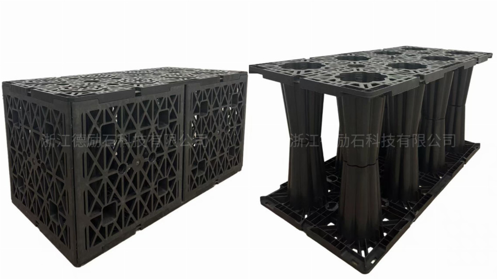 【德勵石】雨水收集設施,從雨水收集源頭起步,配套管道、儲蓄、凈化、再利用全套設施,無需額外搭配其他品牌設備,實現雨水處理 “一站式解決”。其中,專利儲水模塊尺寸滿足規范CJ/T542-2020 尺寸為1200*600*600,單組重量需達到23KG以上,模塊承壓滿足正向單層垂直承壓力≥500kN/m2 ,側向單層垂直承壓力≥90kN/m2 ,為了保證整體蓄水池的牢固性,防止塌方,單組模塊上下連接柱和模塊一次注塑成型,具備優異的結構穩定性和抗壓性能,可適配多種復雜安裝環境,無需擔心場地限制問題。